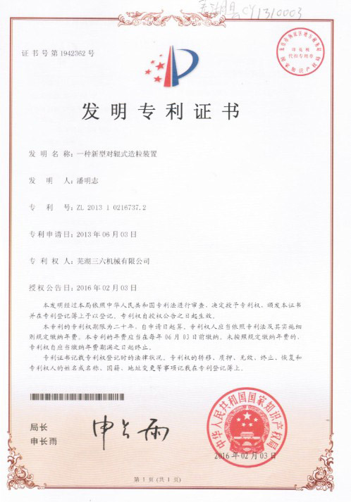• 發明專利證書
